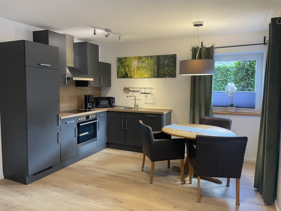 - Einbauküche (incl. Spülmaschine, Backofen, Herd, Kühlschrank mit Gefrierfach, Mikrowelle)